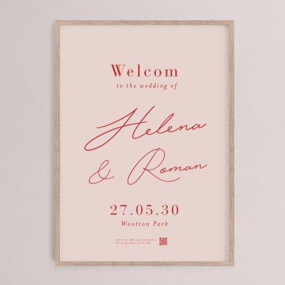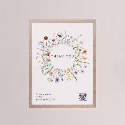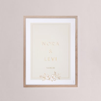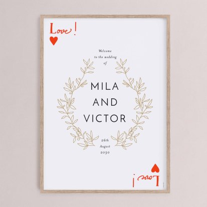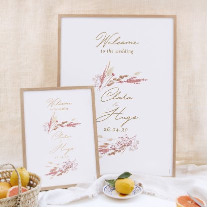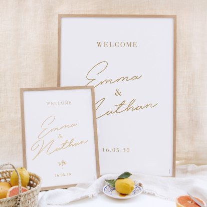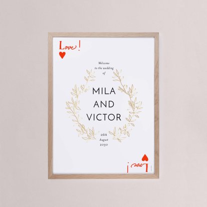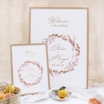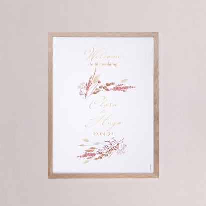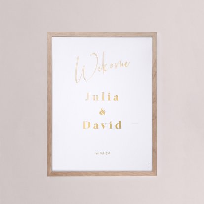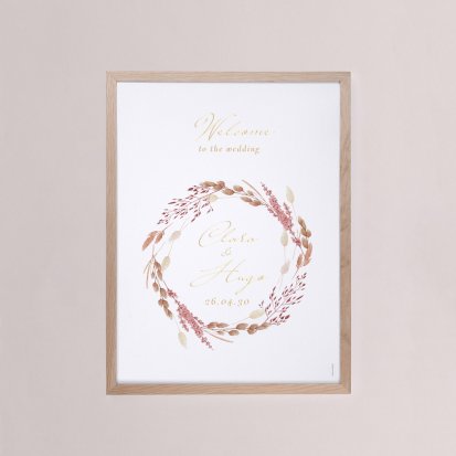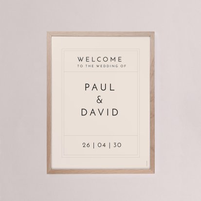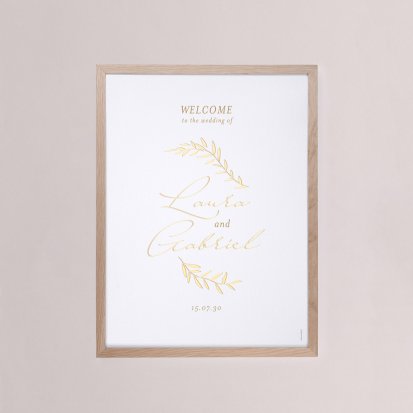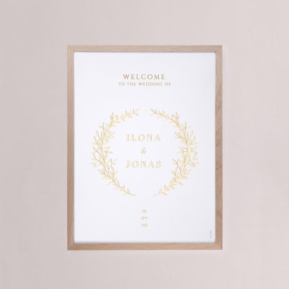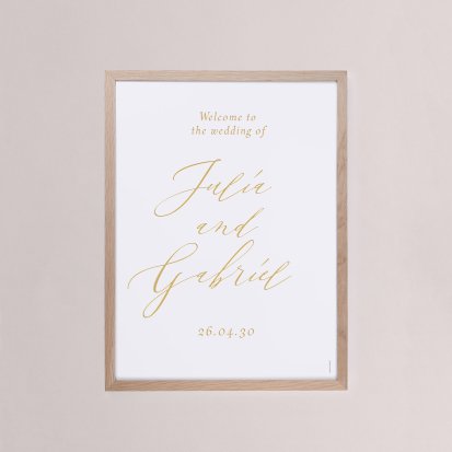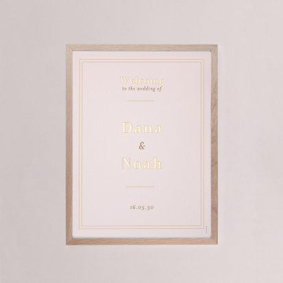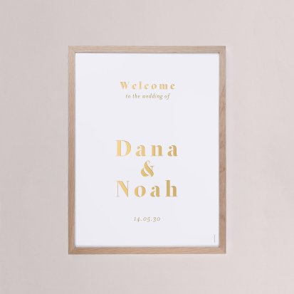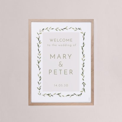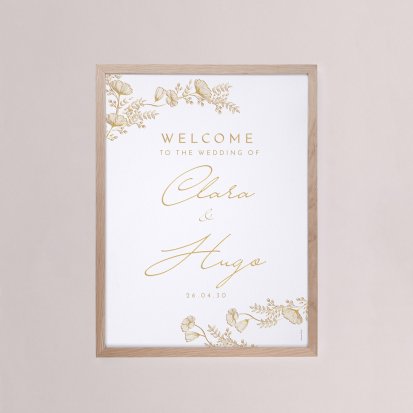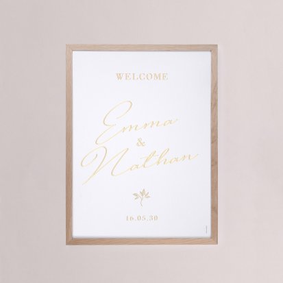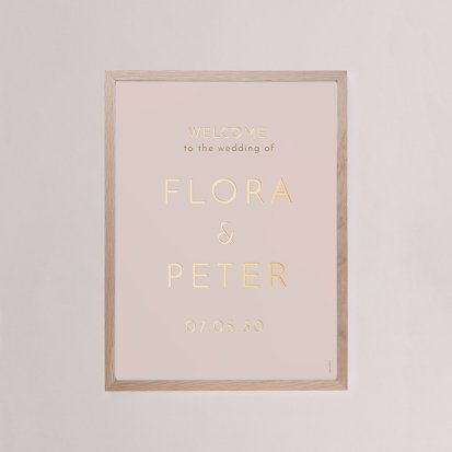 Cotton Bird's extensive range of wedding welcome signs come with the option of being mounted in an oak frame for support, so you can rest assured that your sign will sit securely wherever you choose to position it. This also allows you to easily pin it up on a wall for extra stability.