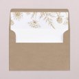 This wedding announcement comes in the form of a landscape card folded into three parts, accompanied by its personalised label. When you open it, your loved ones will discover the details of your special day. Enhance your cards with a pretty ribbon (available at extra cost), complete with its own label.