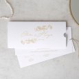 Elegant calligraphies and pretty flower ornements dance in gold on the wedding invitation Orangerie II: a model doubtlessly chic, announcing the beautiful ceremony to come.