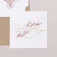The future weds in search of a rustic stationery will be seduced by the delicacy and the poetry of the invitation Ambrosia III. Golden calligraphy and dried flowers ornements create a bundle of charm announcing a beautiful day to come.