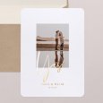 This invitation is a double-sided card in portrait format. It has rounded corners to echo the soft feel of your wedding announcement.