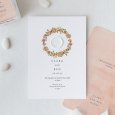 A poetic wreath of pink flowers is featured on the Cottage wedding invitation. Delicate, colourful and full of freshness, this design will be perfect for a beautiful day with a country, bohemian or simply romantic theme.
