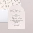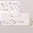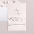 This announcement comes in the form of a large-format landscape card, with illustrations inspired by screen printing. It can be personalised on the front with details of your special day.