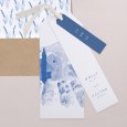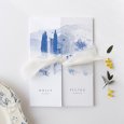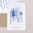 This announcement comes in the form of a large-format landscape card, with illustrations inspired by screen printing. It can be personalised on the front with details of your special day.