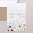 This wedding invitation is made of a single customisable card, wrapped in translucent vellum paper.