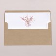 The future weds in search of a rustic stationery will be seduced by the delicacy and the poetry of the invitation Ambrosia III. Golden calligraphy and dried flowers ornements create a bundle of charm announcing a beautiful day to come.