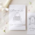 There are perforations on the invitation for threading through a pretty ribbon with a tag, adding that little detail that makes all the difference.