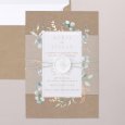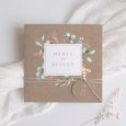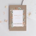 On the Symphonia wedding invitation, authenticity meets modernity. Its delicate eucalyptus tree leaves are sketched in a watercolour style, its kraft-looking paper and its typography enhanced by a copper finish create an elegant symphony to announce the most beautiful day of your life.