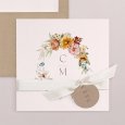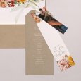 This model comprises an invitation and an evening invitation to slip inside. There are perforations for threading through a pretty ribbon (optional extra) with a tag, the little detail that makes all the difference.