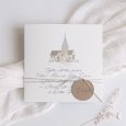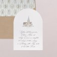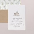 This model comprises an invitation and an evening invitation to slip inside. There are perforations for threading through a pretty ribbon (optional extra) with a tag, the little detail that makes all the difference.