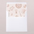 This model comprises an invitation and an evening invitation to slip inside. There are perforations for threading through a pretty ribbon (optional extra) with a tag, the little detail that makes all the difference.