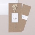 This wedding invitation is made of a double-sided card and a bookmark slipped on the inside. Two punched holes allow you to slide in a few dried flowers (to add as an accessory). So that your guests can appreciate the beauty of the whole invitation decorated with dried flowers, prefer hand-delivery to a postal send.