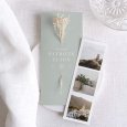 This wedding invitation is made of a double-sided card and a bookmark slipped on the inside. Two punched holes allow you to slide in a few dried flowers (to add as an accessory). So that your guests can appreciate the beauty of the whole invitation decorated with dried flowers, prefer hand-delivery to a postal send.
