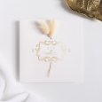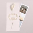 This wedding invitation is made of a double-sided card and a bookmark slipped on the inside. Two punched holes allow you to slide in a few dried flowers (to add as an accessory). So that your guests can appreciate the beauty of the whole invitation decorated with dried flowers, prefer hand-delivery to a postal send.
