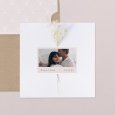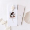 This wedding invitation is made of a double-sided card and a bookmark slipped on the inside. Two punched holes allow you to slide in a few dried flowers (to add as an accessory). So that your guests can appreciate the beauty of the whole invitation decorated with dried flowers, prefer hand-delivery to a postal send.