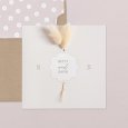 This wedding invitation is made of a double-sided card and a bookmark slipped on the inside. Two punched holes allow you to slide in a few dried flowers (to add as an accessory). So that your guests can appreciate the beauty of the whole invitation decorated with dried flowers, prefer hand-delivery to a postal send.