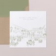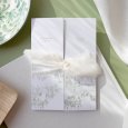 This invitation comes in the form of a portrait card, with a central flap and two movable side flaps. When opened, they reveal the key details of your special day. Accessorize with a pretty ribbon (available at extra cost).