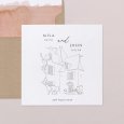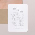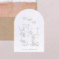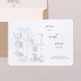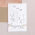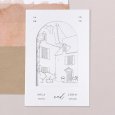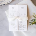 This invitation comes in the form of a portrait card, with a central flap and two movable side flaps. When opened, they reveal the key details of your special day. Accessorize with a pretty ribbon (available at extra cost).