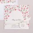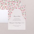 On the Sweet roses wedding invitation, a wreath of roses surrounds the names of the bride and groom, elegantly calligraphed. A delicate watercolour in pink tones, perfect for announcing a romantic or country-style wedding.