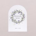 Announce the delicious meal you're about to share on this original wedding menu. With its elegant arch-shaped cut-out, this wedding menu, to match your invitations, will be the perfect complement to your table decorations. Present it on an elegant wooden card holder (available as an option), place one on each plate and decorate them with a pretty ribbon...