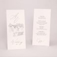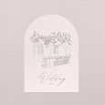Announce the delicious meal you're about to share on this original wedding menu. With its elegant arch-shaped cut-out, this wedding menu, to match your invitations, will be the perfect complement to your table decorations. Present it on an elegant wooden card holder (available as an option), place one on each plate and decorate them with a pretty ribbon...