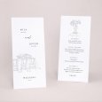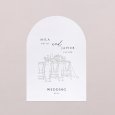 Announce the delicious meal you're about to share on this original wedding menu. With its elegant arch-shaped cut-out, this wedding menu, to match your invitations, will be the perfect complement to your table decorations. Present it on an elegant wooden card holder (available as an option), place one on each plate and decorate them with a pretty ribbon...