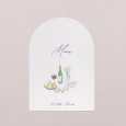 Announce the delicious meal you're about to share on this original wedding menu. With its elegant arch-shaped cut-out, this wedding menu, to match your invitations, will be the perfect complement to your table decorations. Present it on an elegant wooden card holder (available as an option), place one on each plate and decorate them with a pretty ribbon...