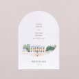 Announce the delicious meal you're about to share on this original wedding menu. With its elegant arch-shaped cut-out, this wedding menu, to match your invitations, will be the perfect complement to your table decorations. Present it on an elegant wooden card holder (available as an option), place one on each plate and decorate them with a pretty ribbon...