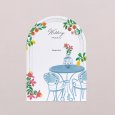 Announce the delicious meal you're about to share on this original wedding menu. With its elegant arch-shaped cut-out, this wedding menu, to match your invitations, will be the perfect complement to your table decorations. Present it on an elegant wooden card holder (available as an option), place one on each plate and decorate them with a pretty ribbon...