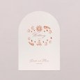 Announce the delicious meal you're about to share on this original wedding menu. With its elegant arch-shaped cut-out, this wedding menu, to match your invitations, will be the perfect complement to your table decorations. Present it on an elegant wooden card holder (available as an option), place one on each plate and decorate them with a pretty ribbon...