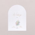Announce the delicious meal you're about to share on this original wedding menu. With its elegant arch-shaped cut-out, this wedding menu, to match your invitations, will be the perfect complement to your table decorations. Present it on an elegant wooden card holder (available as an option), place one on each plate and decorate them with a pretty ribbon...