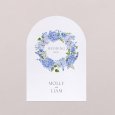 Announce the delicious meal you're about to share on this original wedding menu. With its elegant arch-shaped cut-out, this wedding menu, to match your invitations, will be the perfect complement to your table decorations. Present it on an elegant wooden card holder (available as an option), place one on each plate and decorate them with a pretty ribbon...